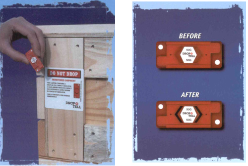 Attach the DROP-N-TELL to your product or shipping container by removing the liner on the back to expose the adhesive or screw/nail